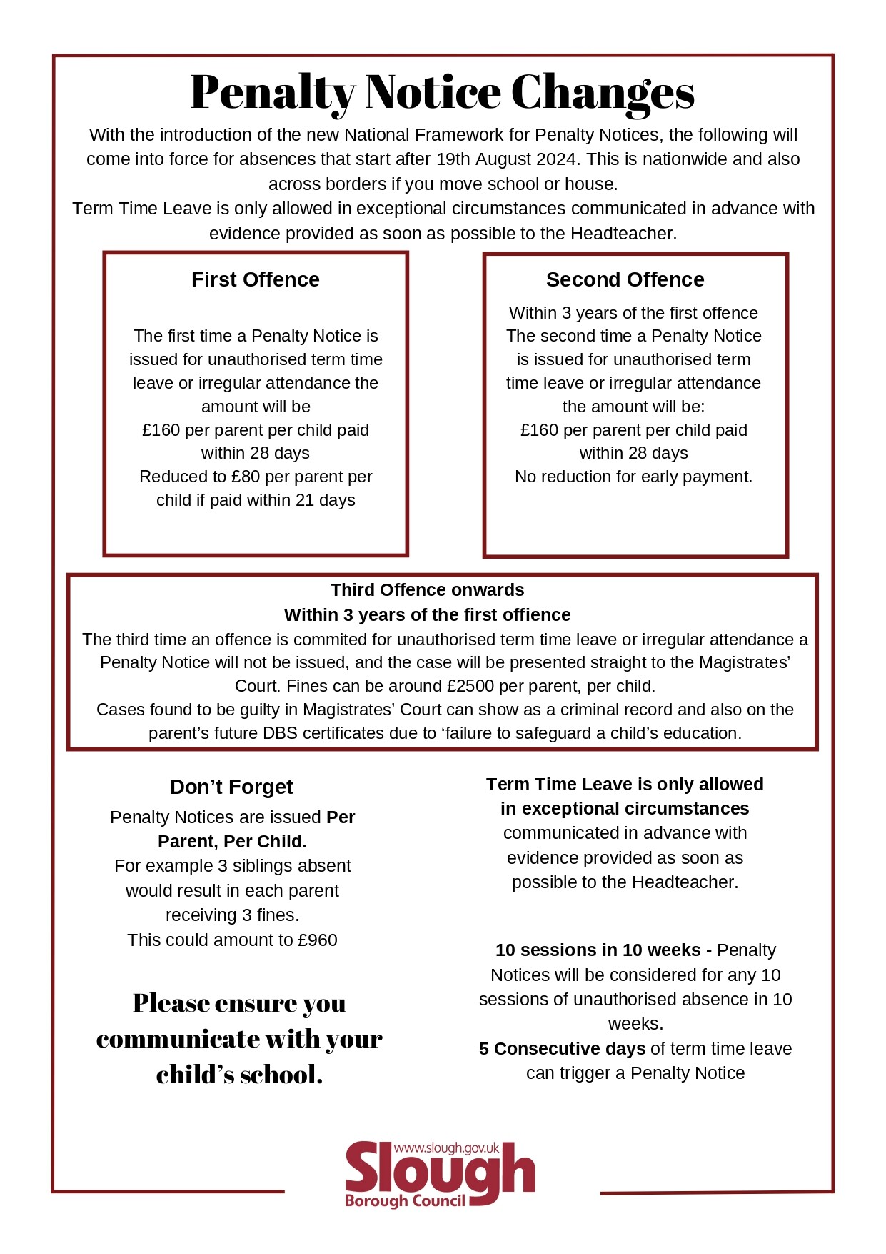 Penalty Notice Changes Updated Penalty Notice Information for Parents - Effective from 19th August 2024